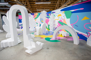 This exhibit is a walkable display that invites visitors to take a stroll through a unique physical and digital art landscape. Hollywood garden, shown at Space1520 in Los Angeles, USA is adressing Hollywood as city of dreams. Cut out of Styrofoam used for movie props, the visitors have been invited to add digital shapes using Augmented Reality to complete the garden of illusions.